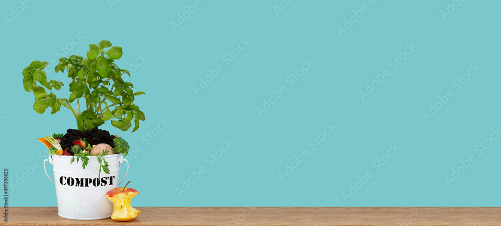 Compost banner background with soil and leftover food, recycling and ...