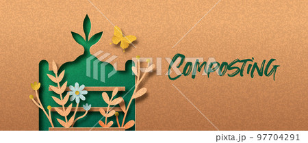 Composting green papercut nature concept bannerのイラスト素材 [97704291] - PIXTA