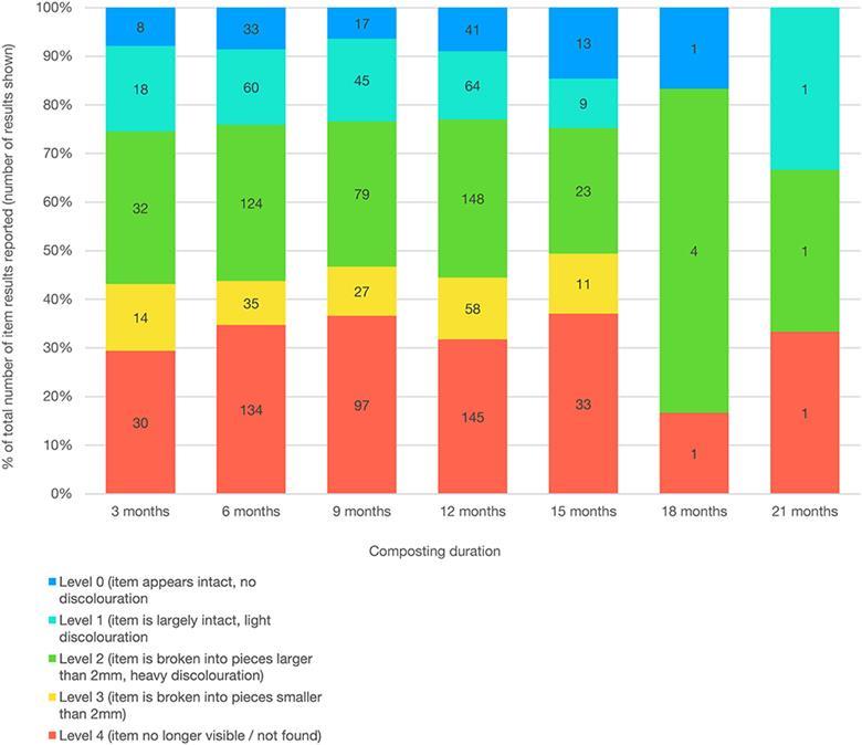 FIGURE Chart showing home compost experiment item degradation level ...