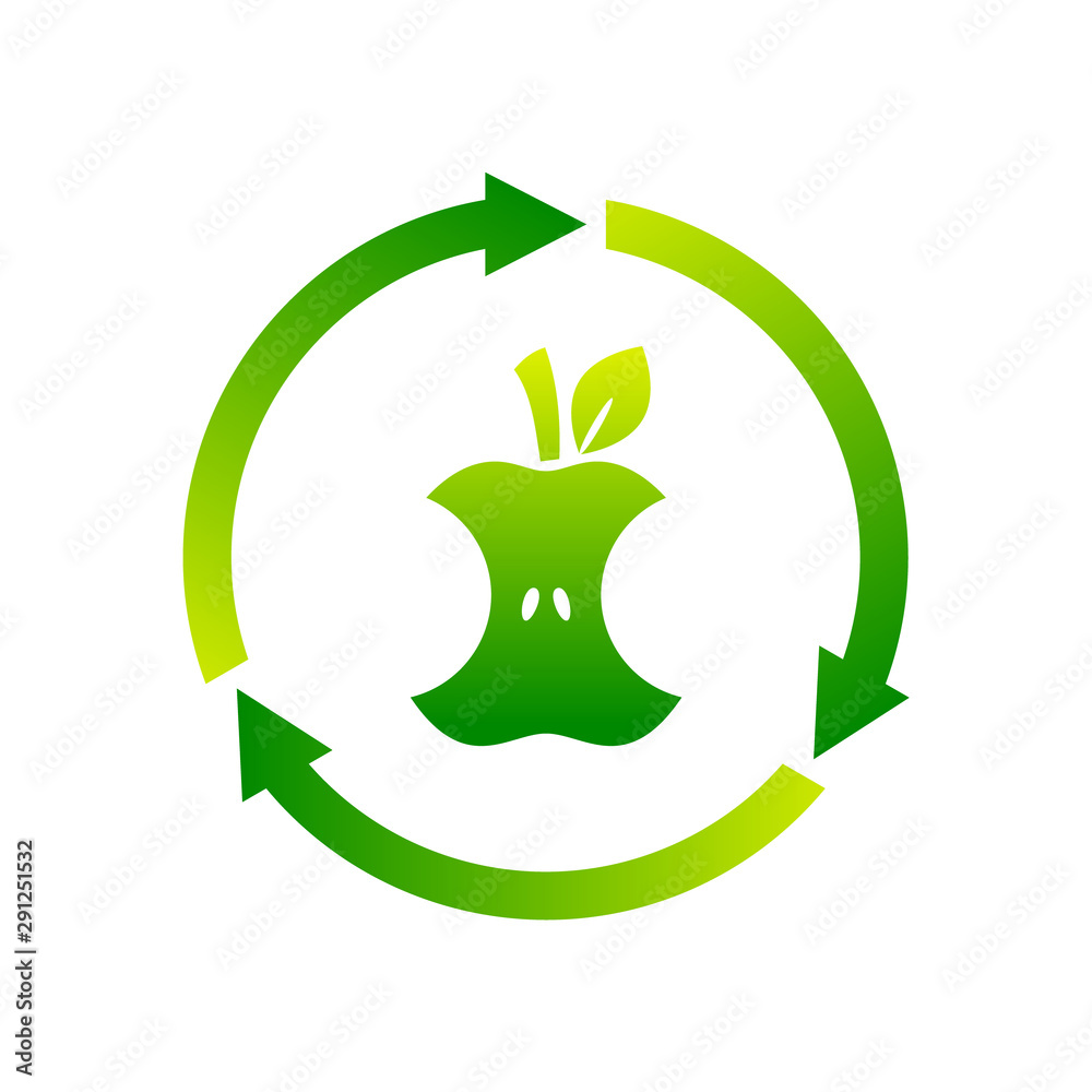Compostable sign, icon, symbol. Apple core inside circle arrows ...