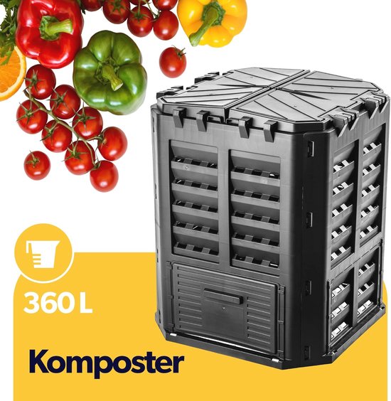 Compostbak Tuin, Plastic Composters Outdoor, Zwart, 300L | bol