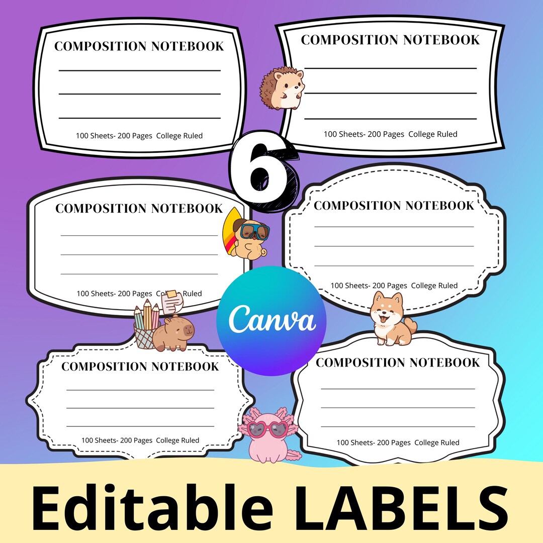 Editable Composition Book Labels, School Supply Labels, Printable Name ...