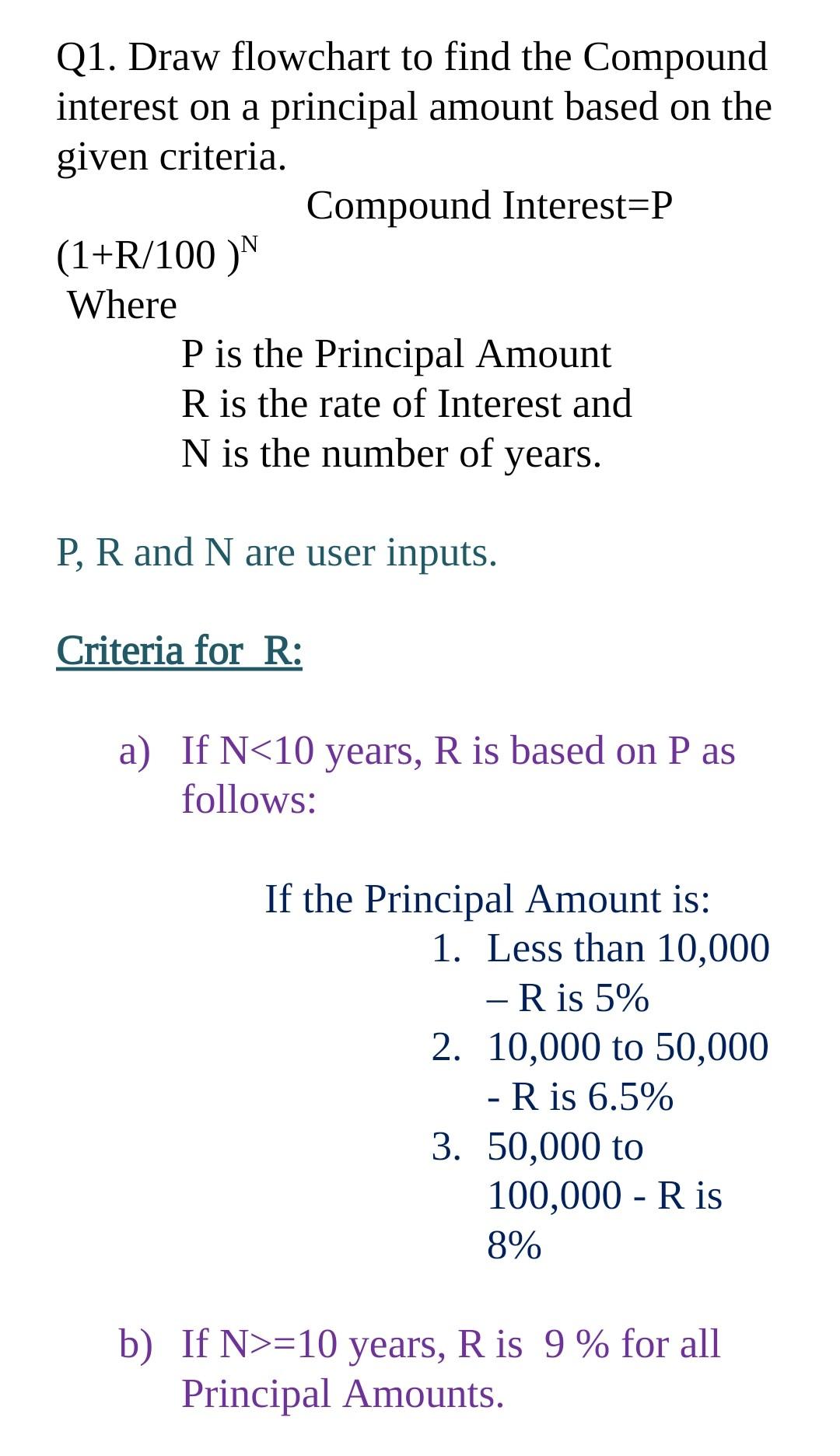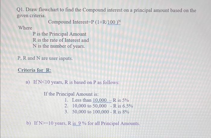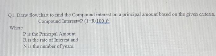 Solved Q1. Draw flowchart to find the Compound interest on a | Chegg.com