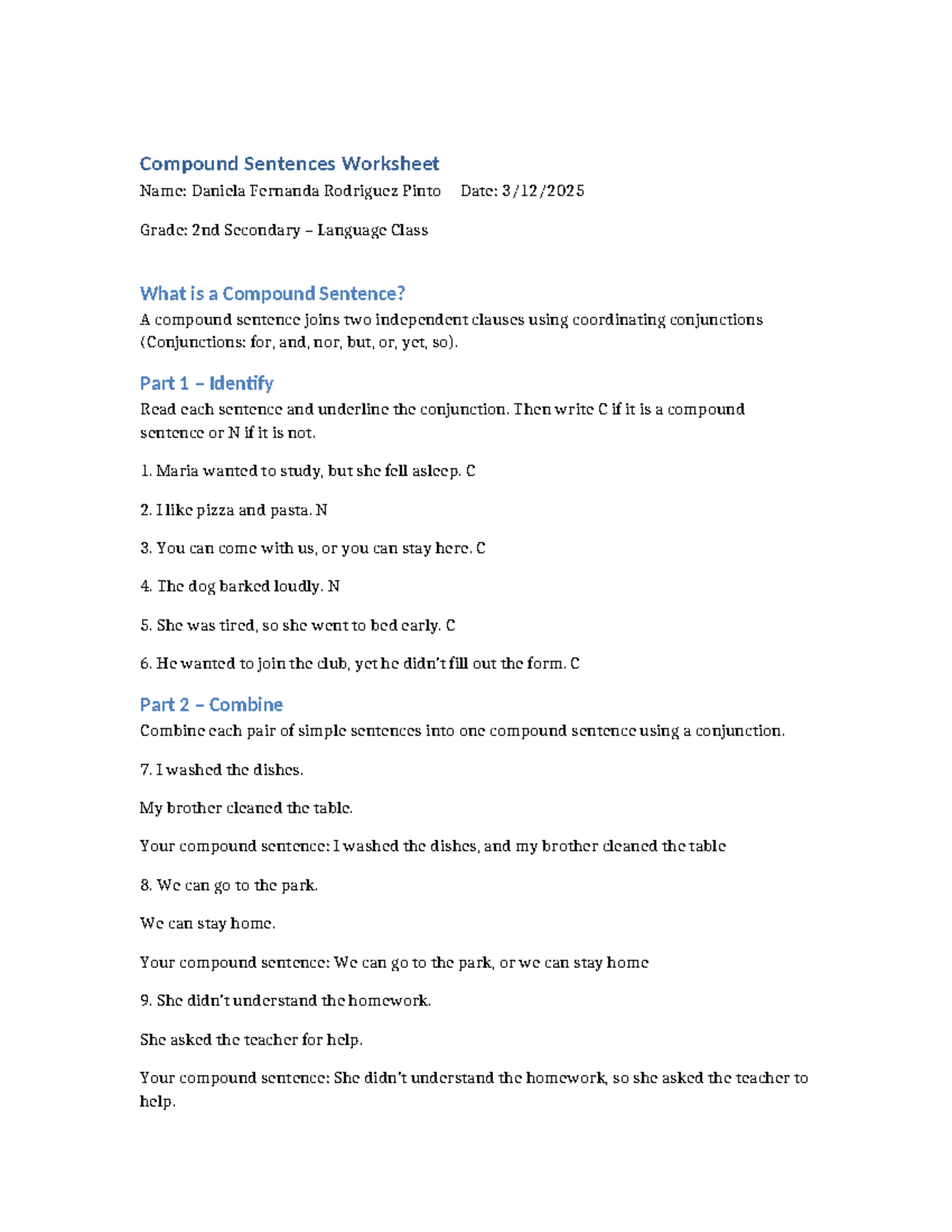 Compound Sentences Worksheet - 2nd Sec Language Class - Studocu