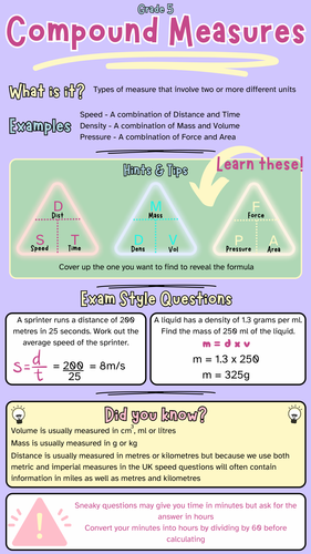Compound Measures Grade 5 GCSE revision help crib sheet | Teaching ...