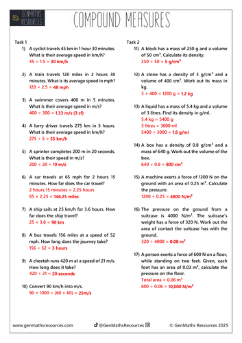 Compound Measures Worksheet + Answers (For All Students) by onmaths