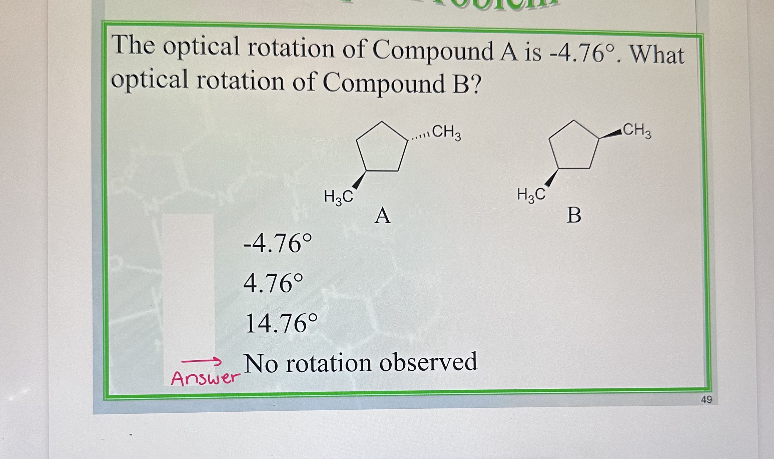 Solved The optical rotation of Compound A is -4.76°. What | Chegg.com