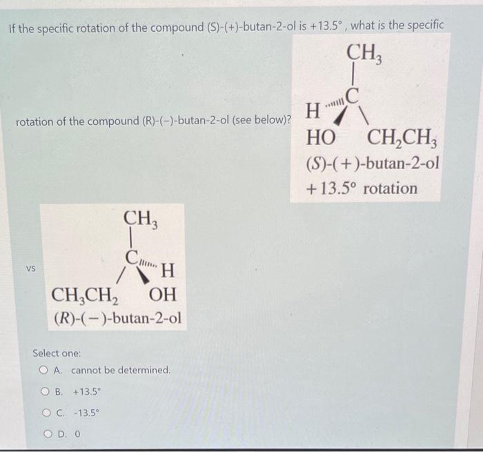 Solved A specific rotation for compound a is +50, what would | Chegg.com