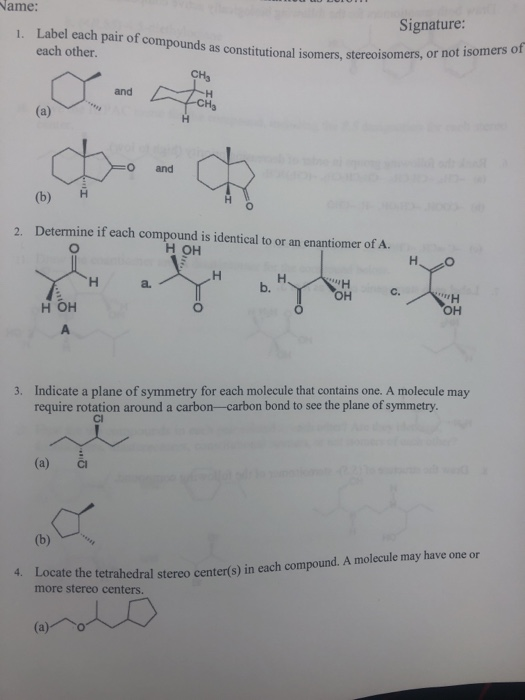 Solved ame: 1. Label each pair of compounds Signature: s as | Chegg.com