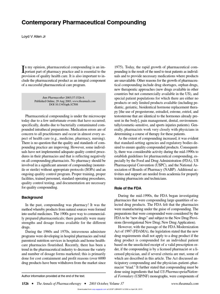Contemporary Pharmaceutical Compounding - Allen - 2003 | PDF | Pharmacy ...