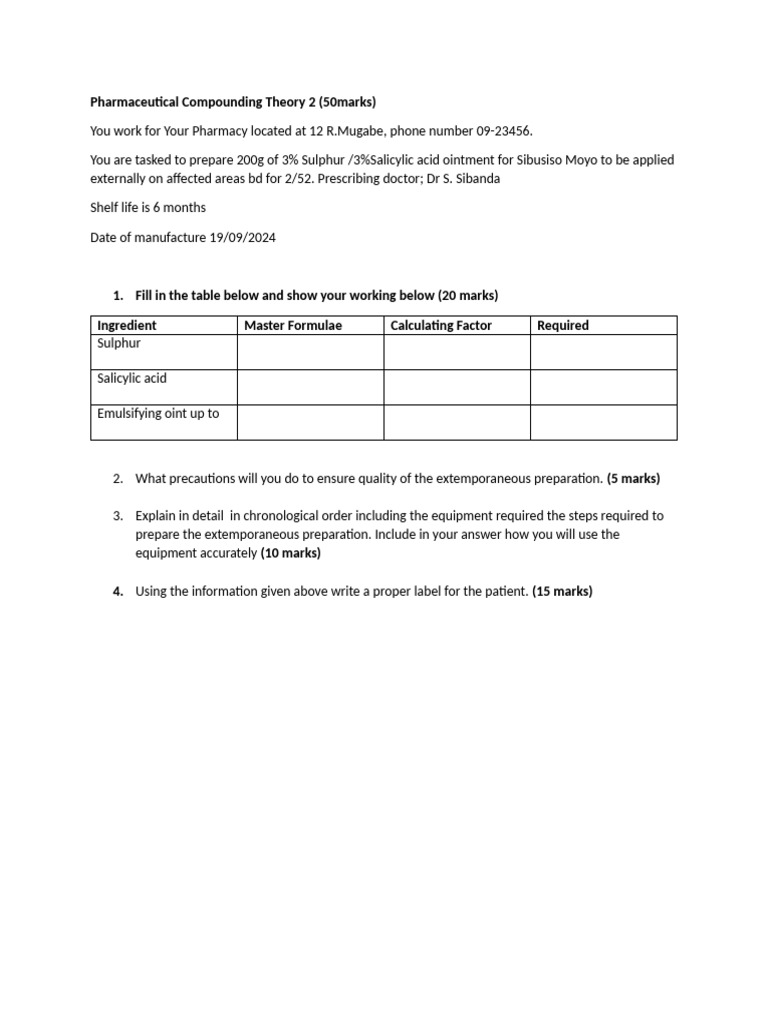Pharmaceutical Compounding Theory 2 | PDF