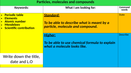 Elements, Compounds and mixtures (Science) Editable daily lesson plans ...