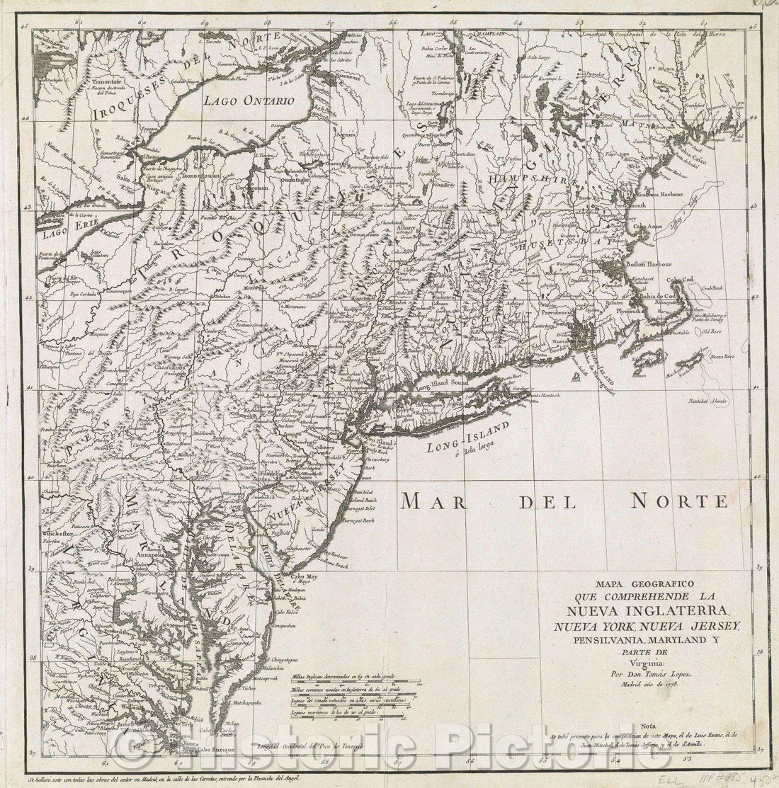 Historic Map : Mapa Geografico que comprehende la Nueva Inglaterra, Nu ...