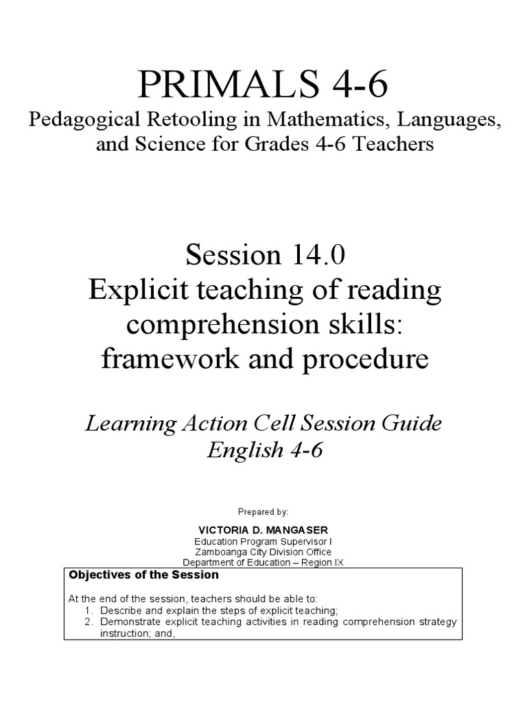 Explicit Teaching of Reading Comprehension Skills Framework and ...