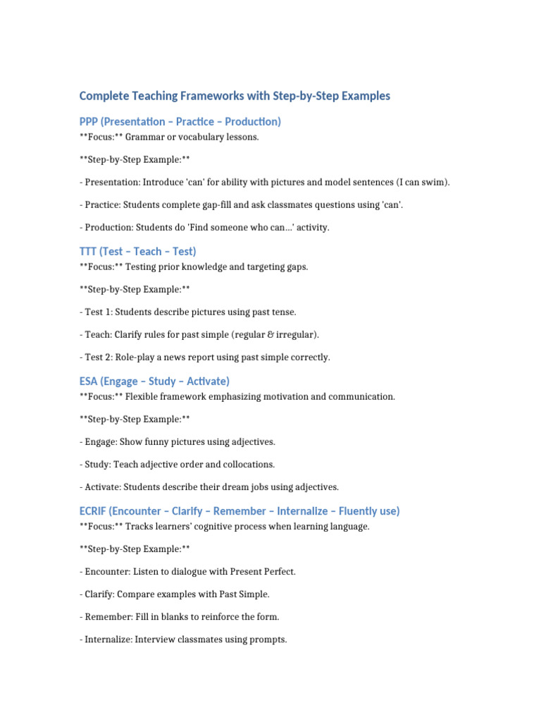 Complete Teaching Frameworks | PDF | Reading Comprehension | Learning