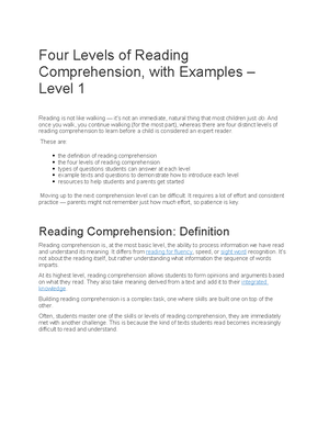SOLUTION: Levels of reading comprehension - Studypool