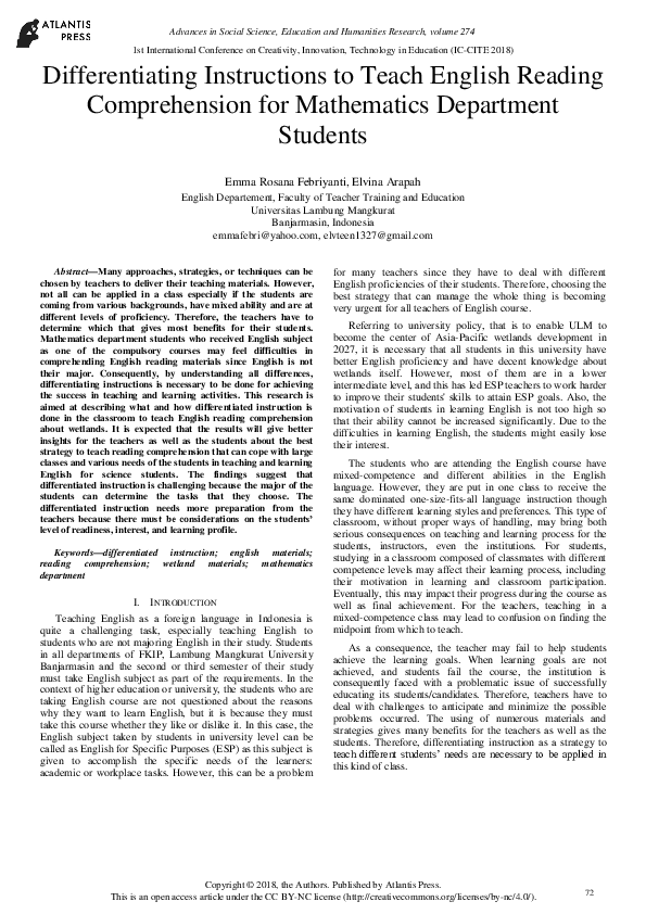 (PDF) Differentiating Instructions to Teach English Reading ...