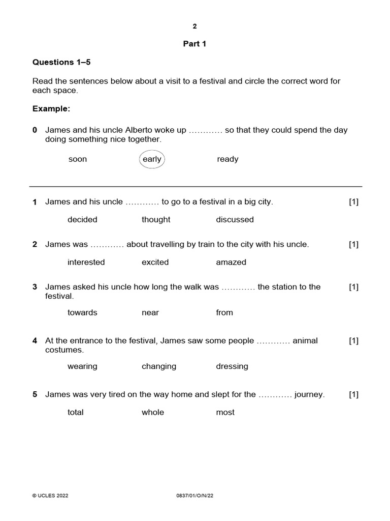 Cambridge Primary Checkpoint ENGLISH Paper 1 Oct 2022 Exam Guide - Studocu