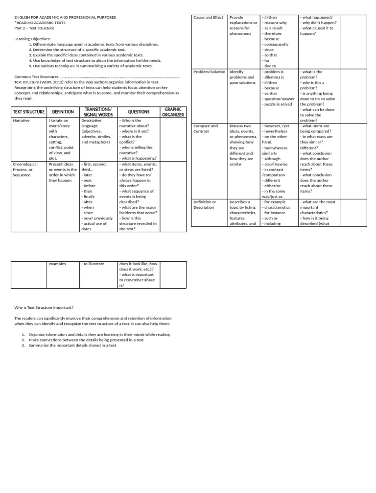PART 2 - Text Structure | PDF | Reading Comprehension | Cognitive ...