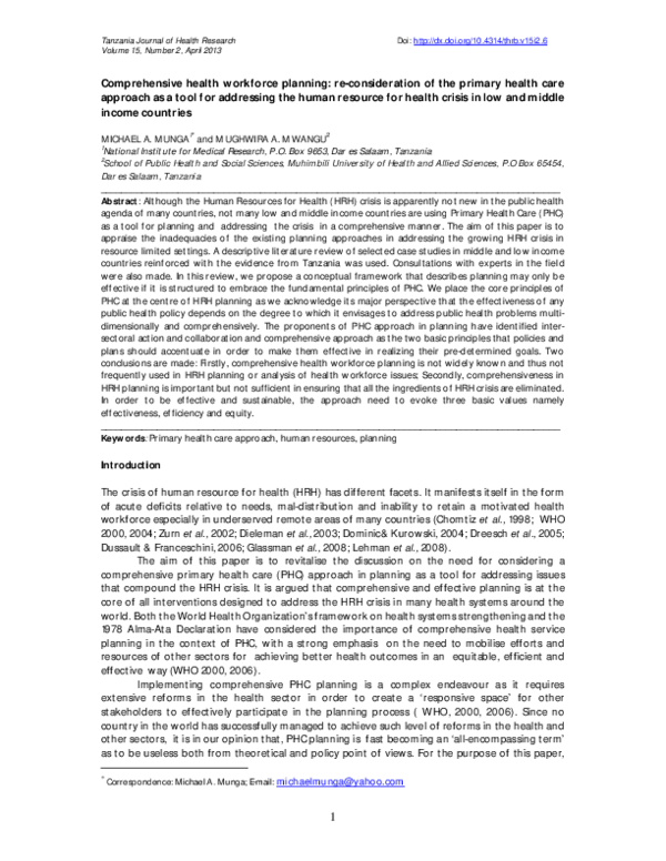 (PDF) Comprehensive health workforce planning: re-consideration of the ...