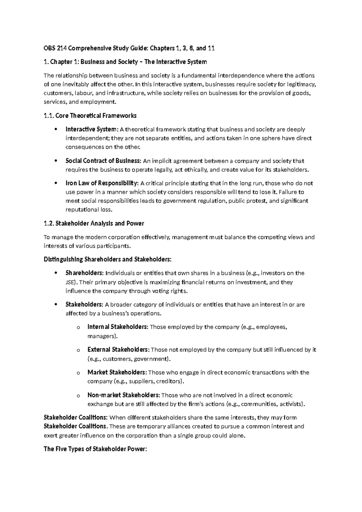 OBS 214 Comprehensive Study Guide: Business, Society, and Ethics - Studocu