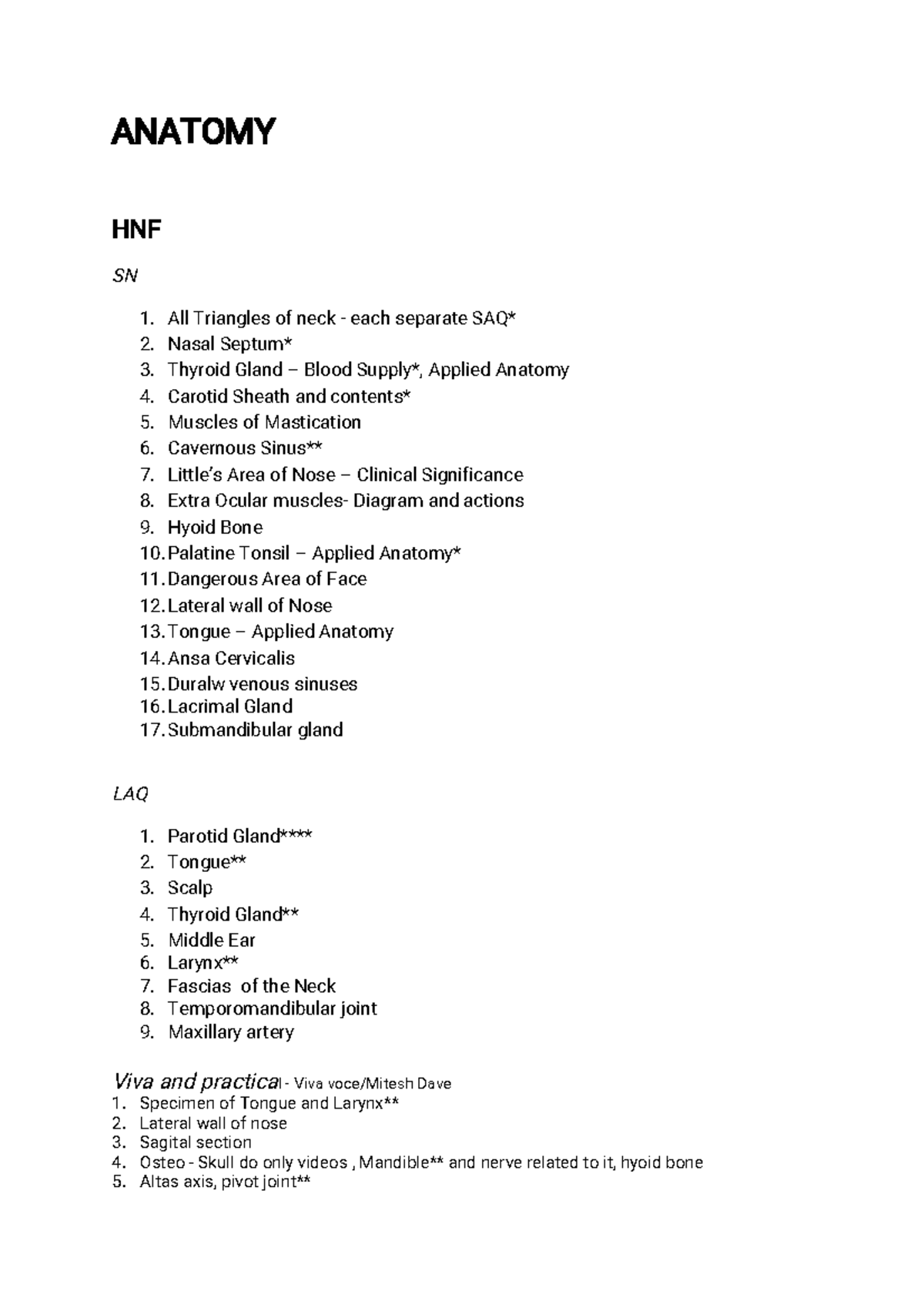 ANATOMY HNF SN - Comprehensive Guide to Neck and Head Structures - Studocu
