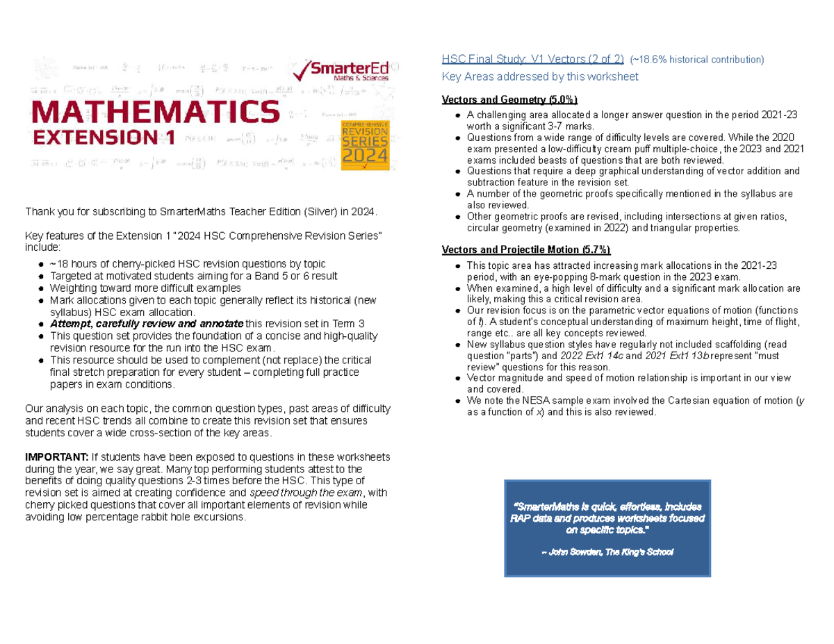 2024 HSC Comprehensive Revision: Vectors EXT1 V1-2 Final Exam Guide ...