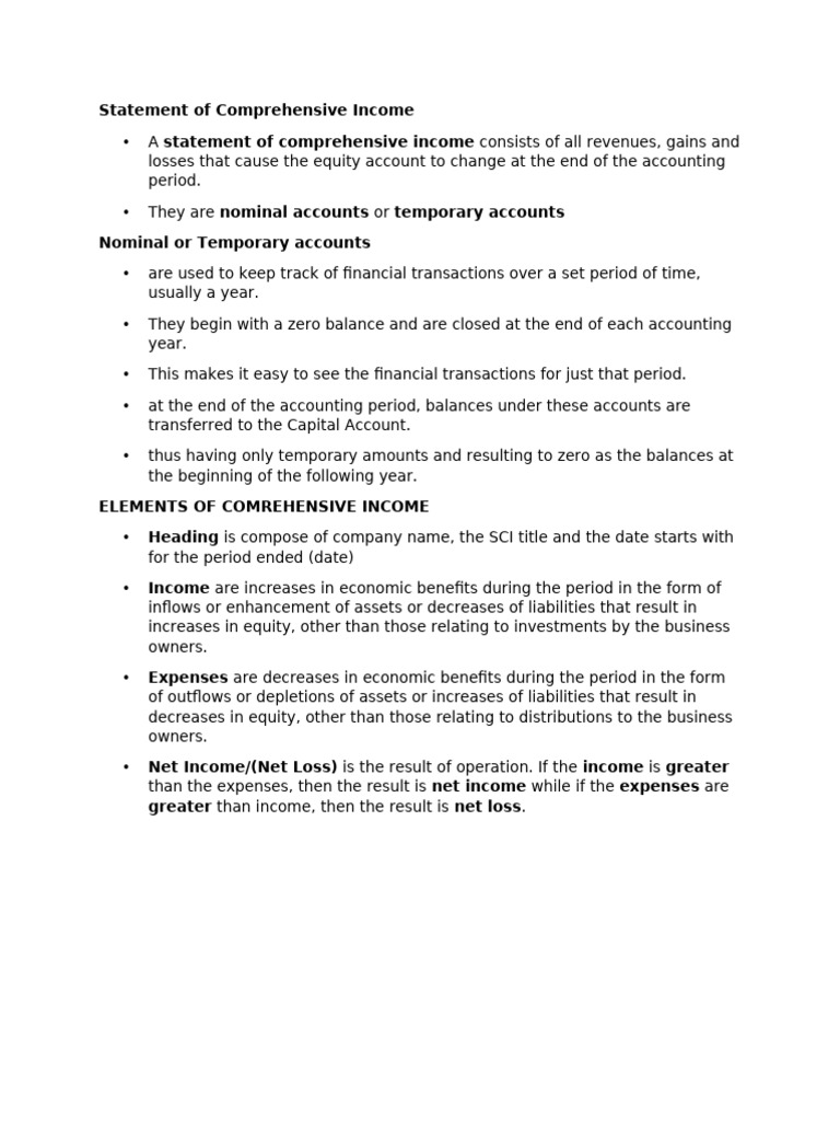 Statement of Comprehensive Income Overview and Elements - Studocu
