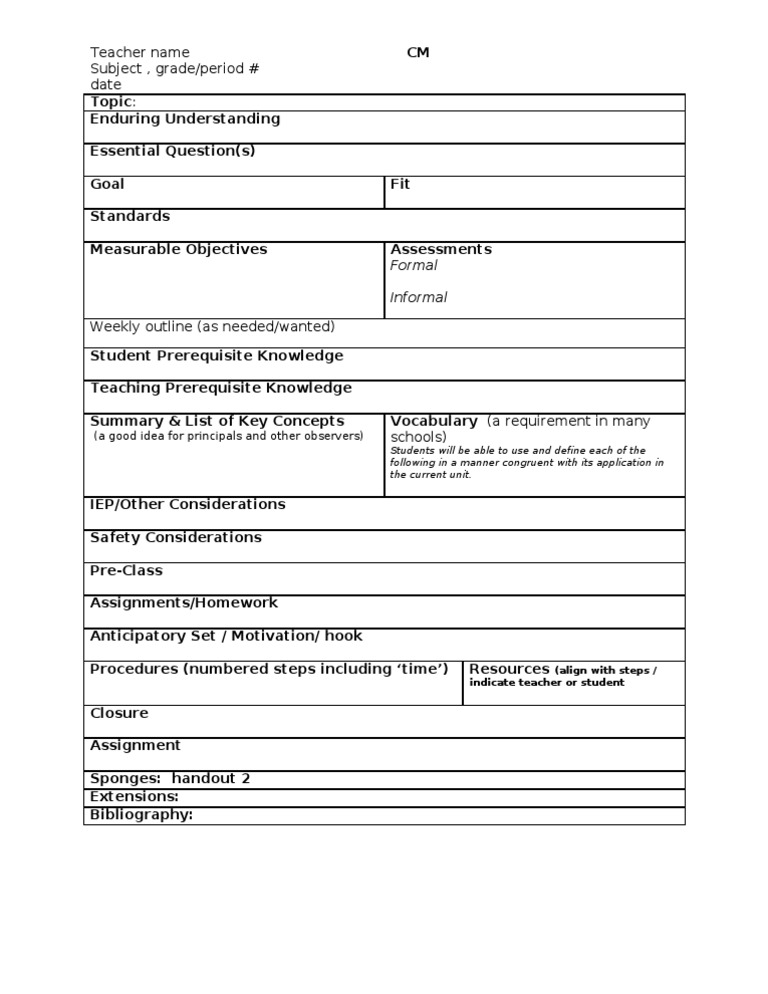 Comprehensive Lesson Plan Format for Future Educators | Course Hero