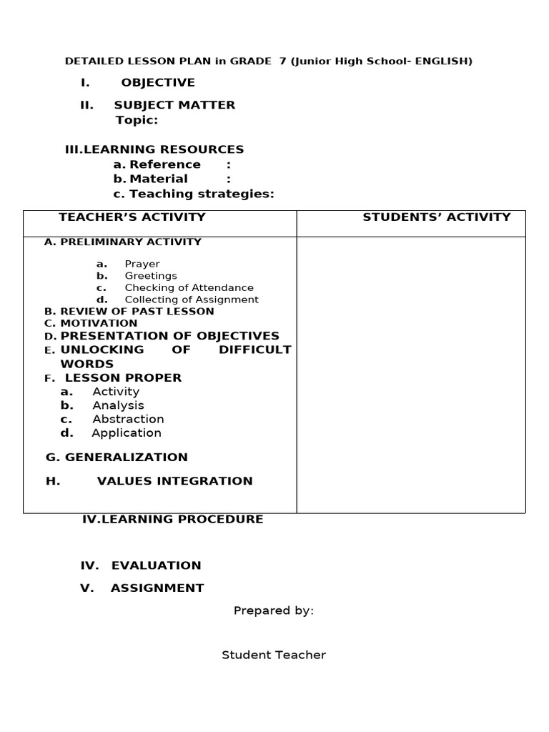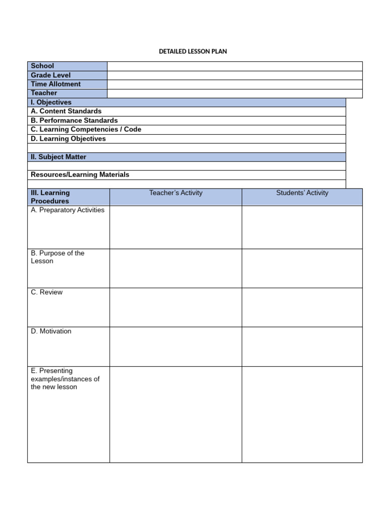 Format Detailed Lesson Plan Template | PDF