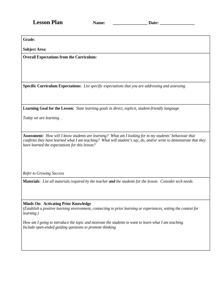 Lesson Plan Template - Create Effective Lesson Plans with Ease