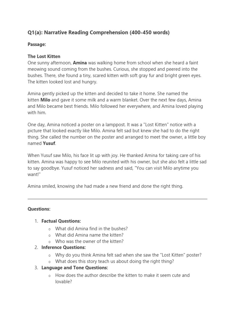 Q1 A Narrative Reading Comprehensive Example 2 | PDF