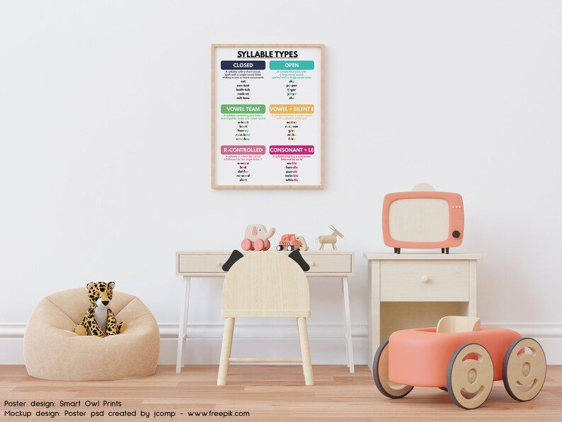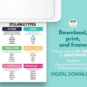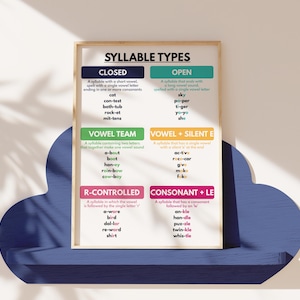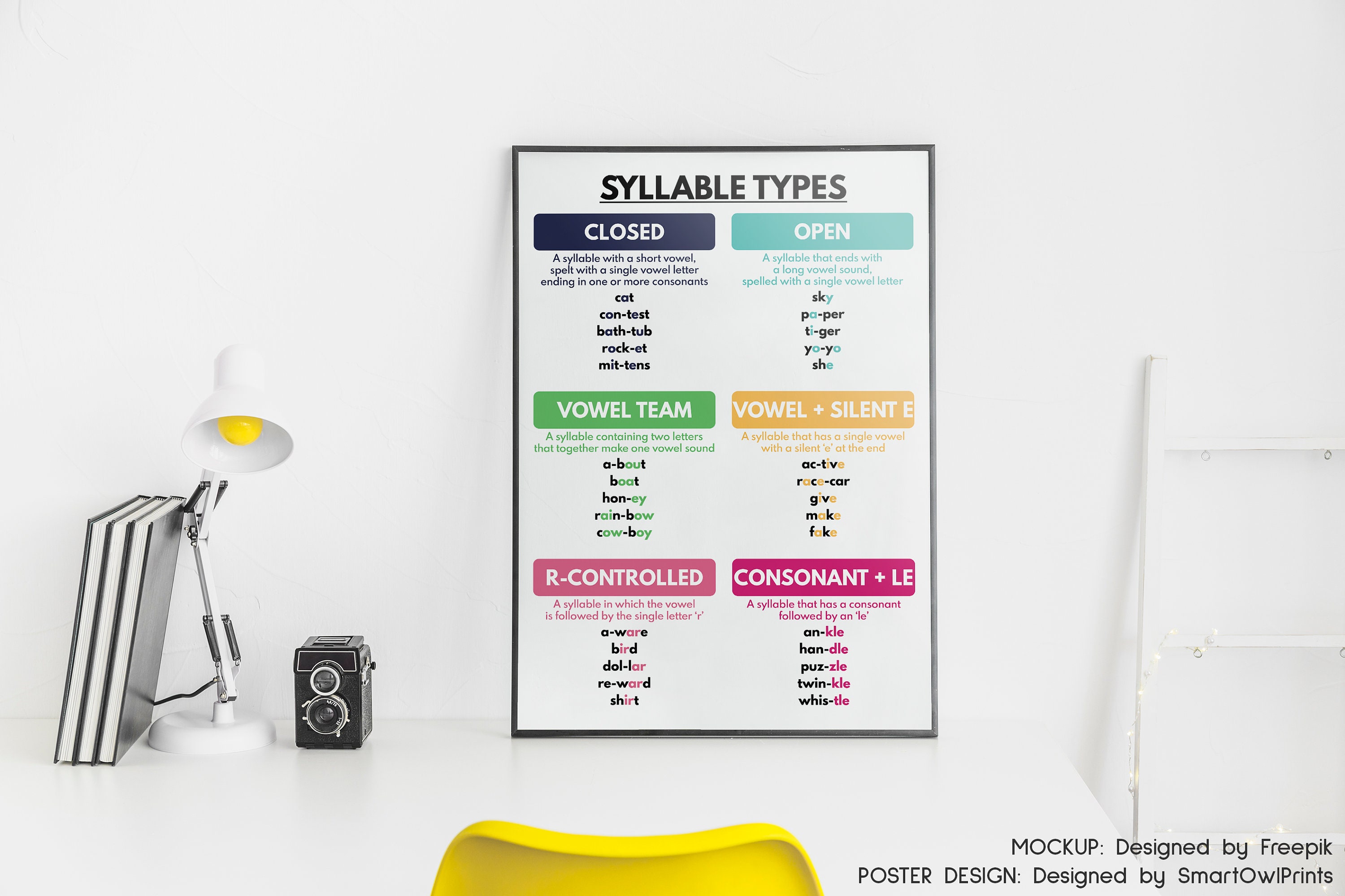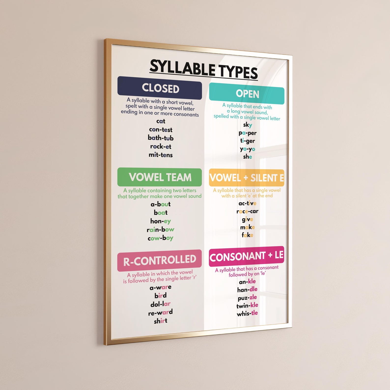 Comprehensive SYLLABLE TYPES POSTER, English Grammar Chart, Homeschool ...