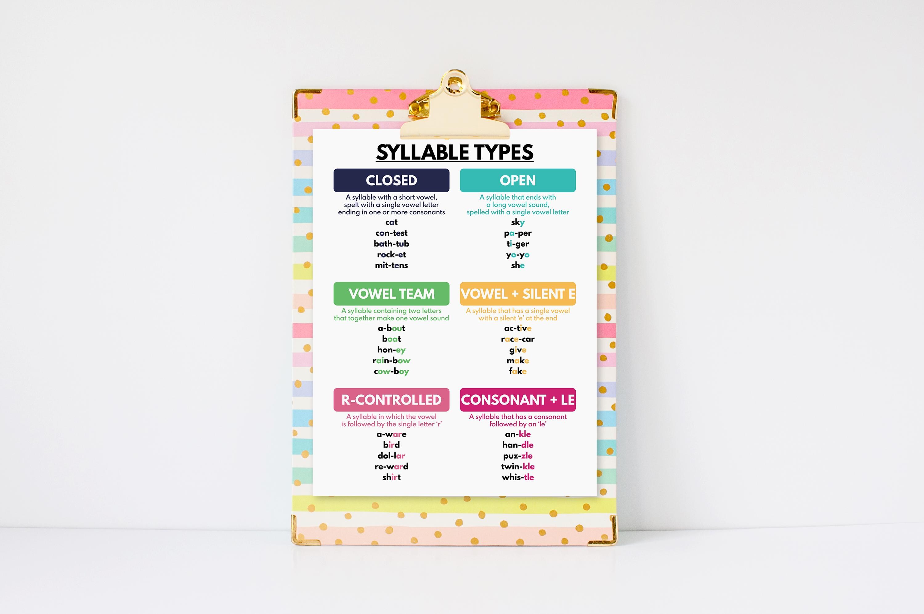 Complete Syllable Set | Teaching syllables, Syllable types, Syllable
