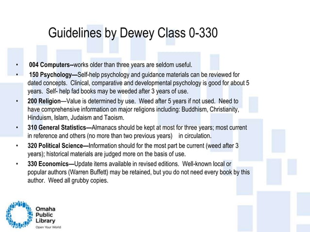 Weeding guidelines by dewey classification library media services – Artofit