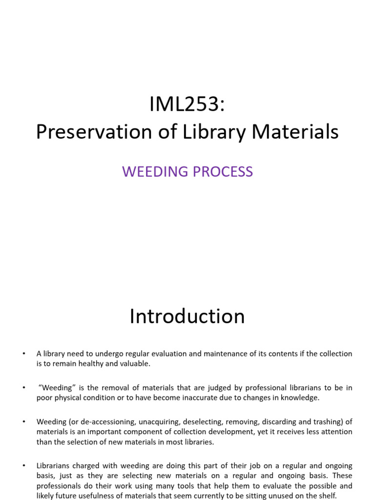 Weeding as a part of Collection Development: A Guide for Libraries | PPT