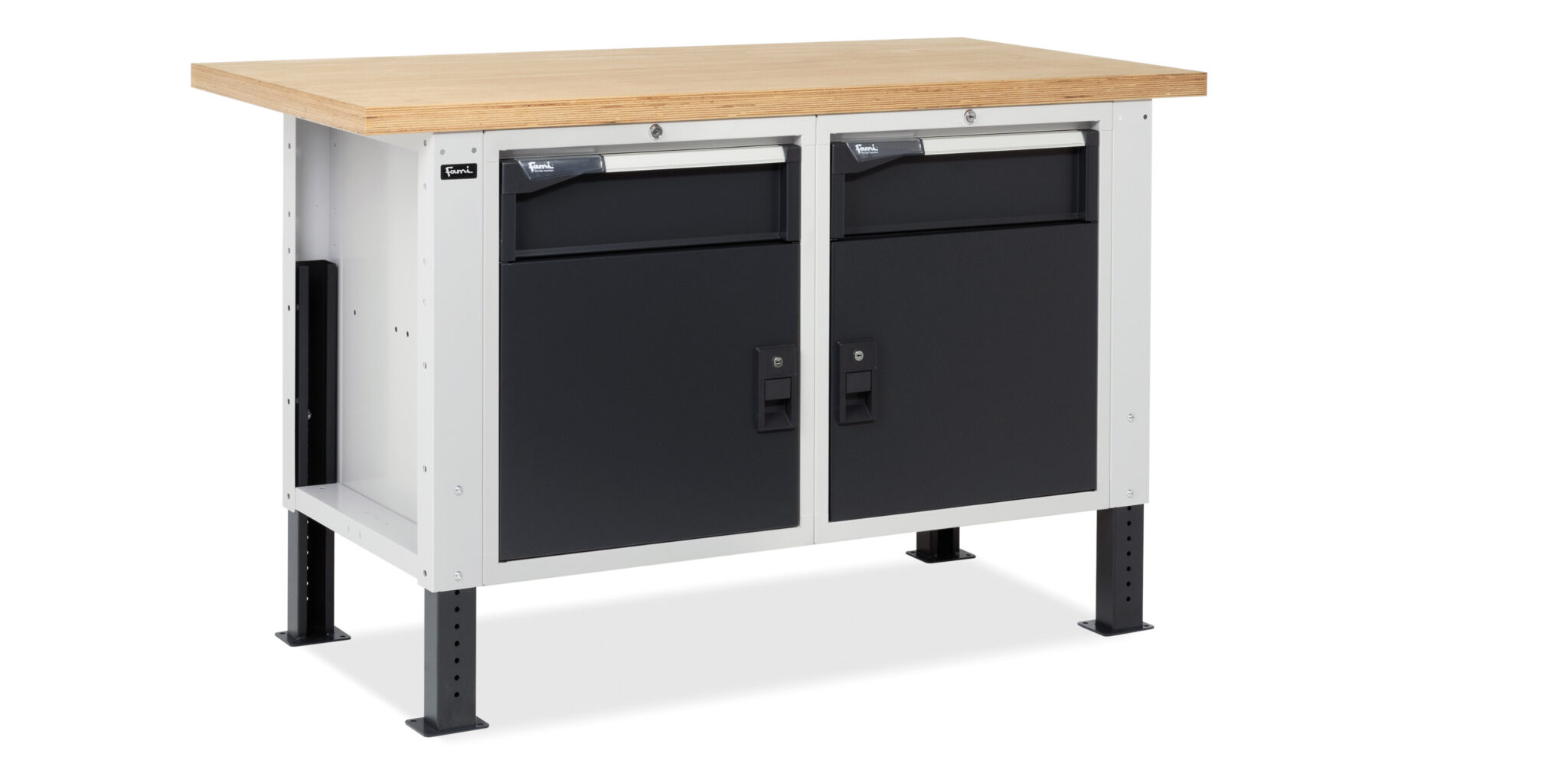 Work bench, 2.1 m long, with wood top, 4 drawers and door module C58BC ...