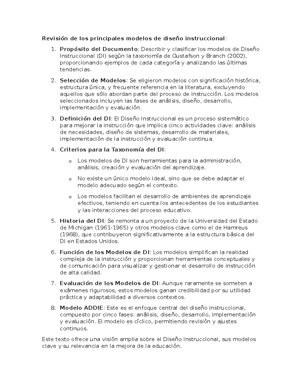 Modelos de Diseño Instruccional: Clasificación y Análisis Comprehensivo ...
