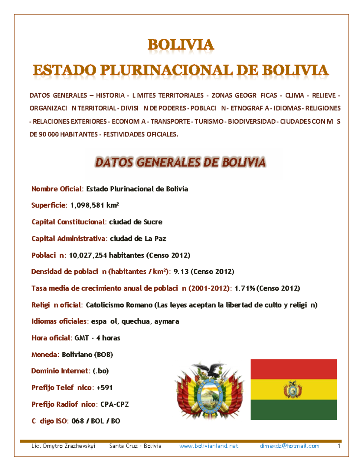 DATOS GENERALES Y HISTORIA DE BOLIVIA - ESTUDIO COMPREHENSIVO (BOL 101 ...