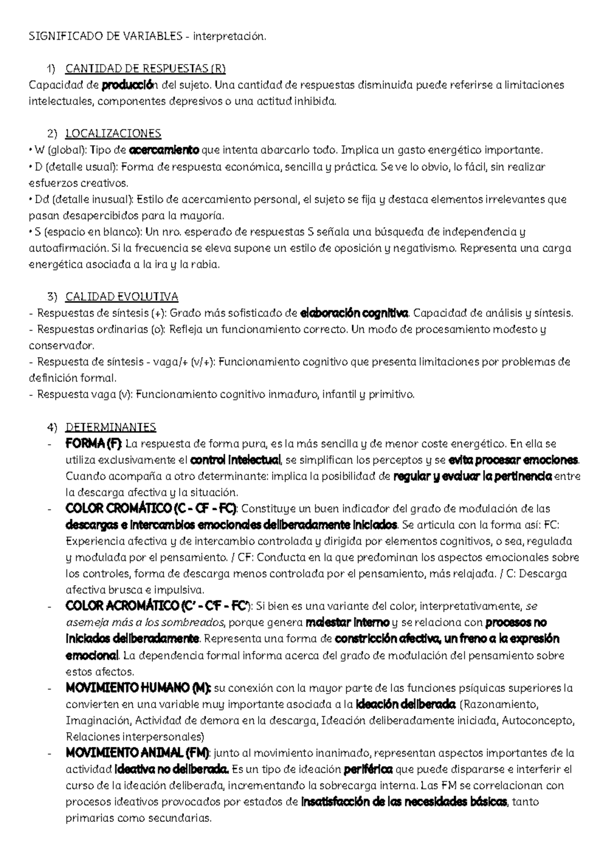 Interpretación Rorschach, Sistema Comprehensivo - SIGNIFICADO DE ...
