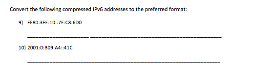 Solved Convert the following compressed IPv6 addresses to | Chegg.com
