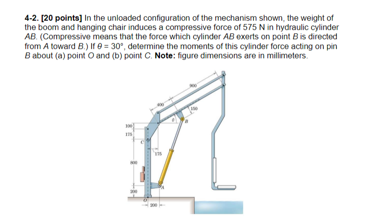 4-2. [20 points] In the unloaded configuration of the mechanism shown ...