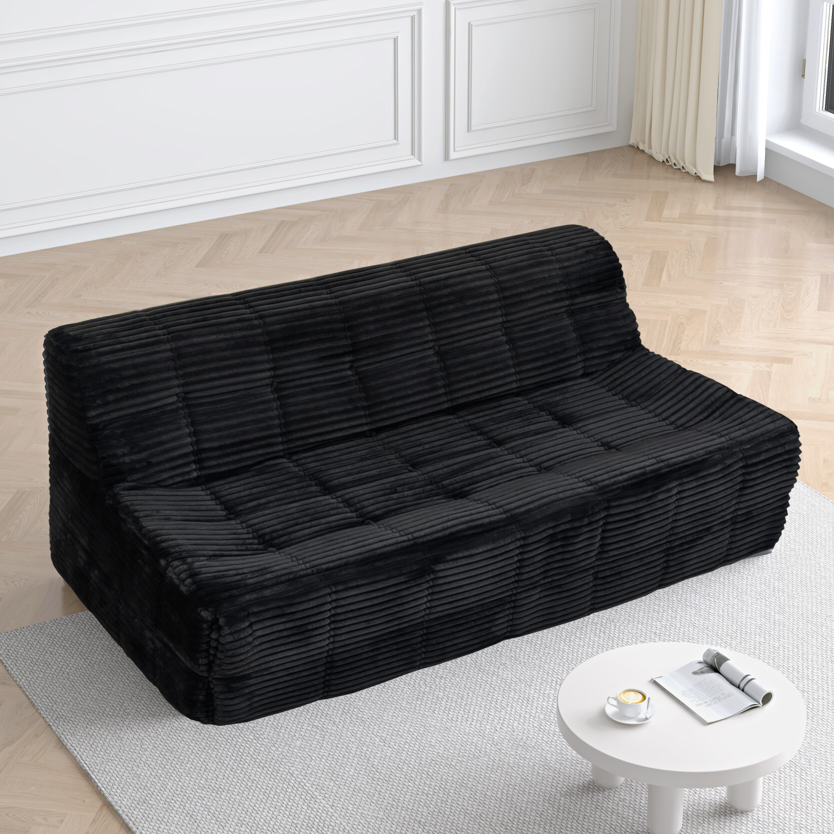 Wankai Compressed Furniture Modern Home Living Room Black Fabric ...