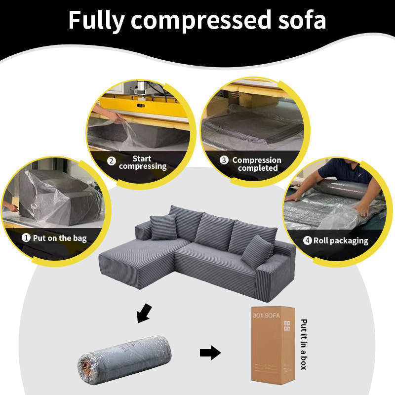 Corner sofa Compressed Sectional Sofa Modern Minimalist Style Corduroy ...