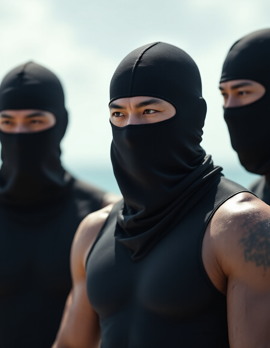 FLUX prompt: Three muscular male Chinese swimmers wear ti...