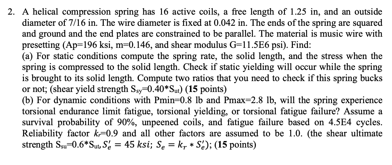 Solved 2. A helical compression spring has 16 active coils, | Chegg.com
