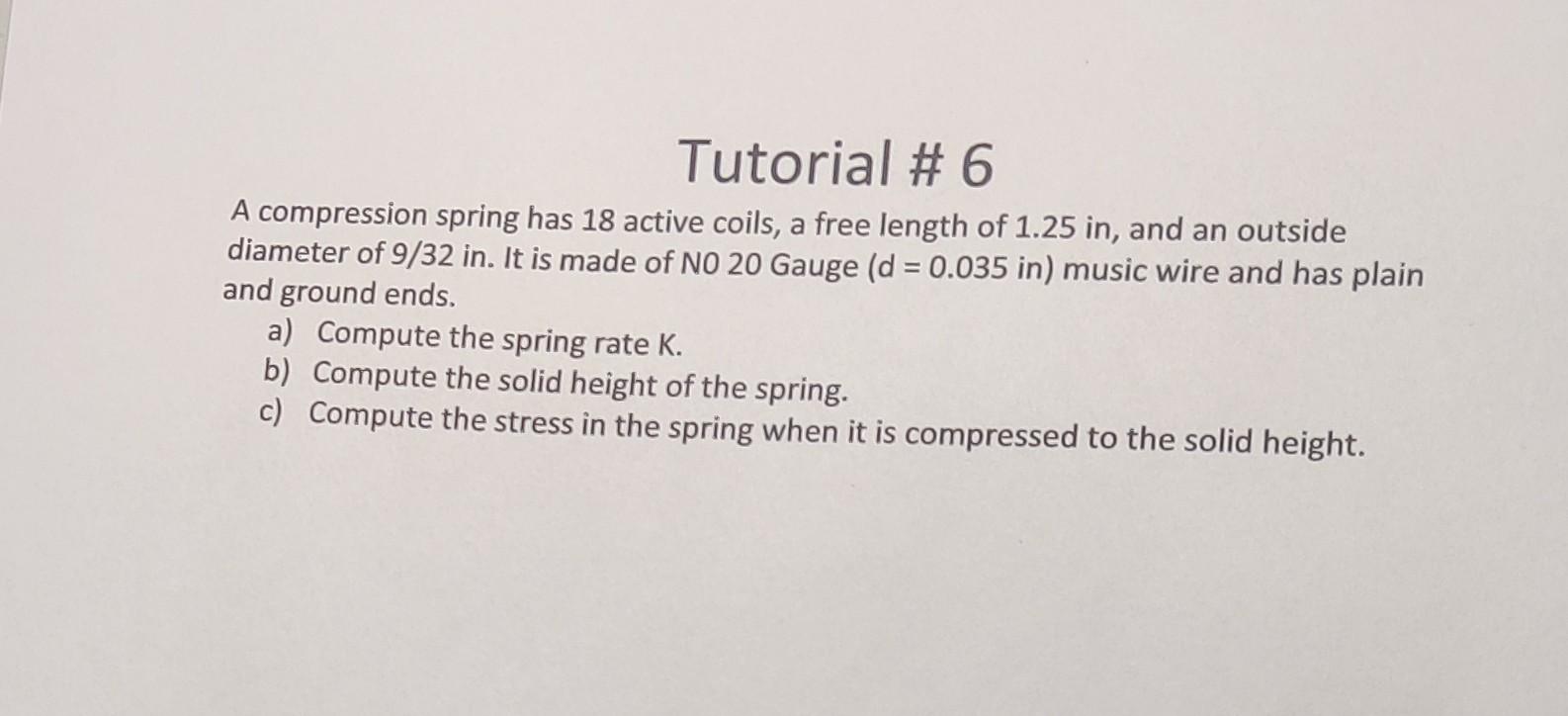 Solved A compression spring has 18 active coils, a free | Chegg.com