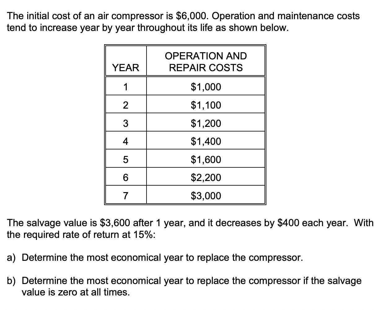 Solved The initial cost of an air compressor is $6,000. | Chegg.com