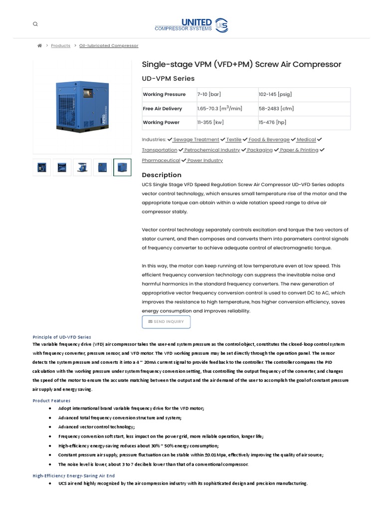 Single-Stage VPM (VFD+PM) Screw Air Compressor - UCS | PDF | Power ...