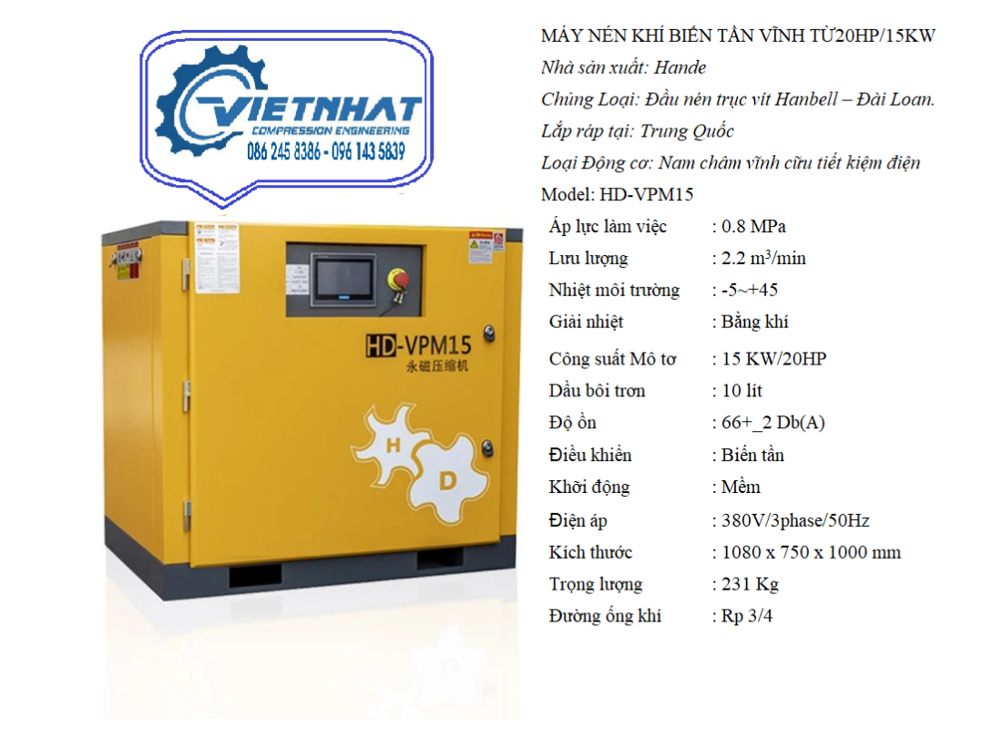 Máy Nén Khí HD-VPM15 Khỡi Động Biến Tần - Khí Nén Việt Nhật